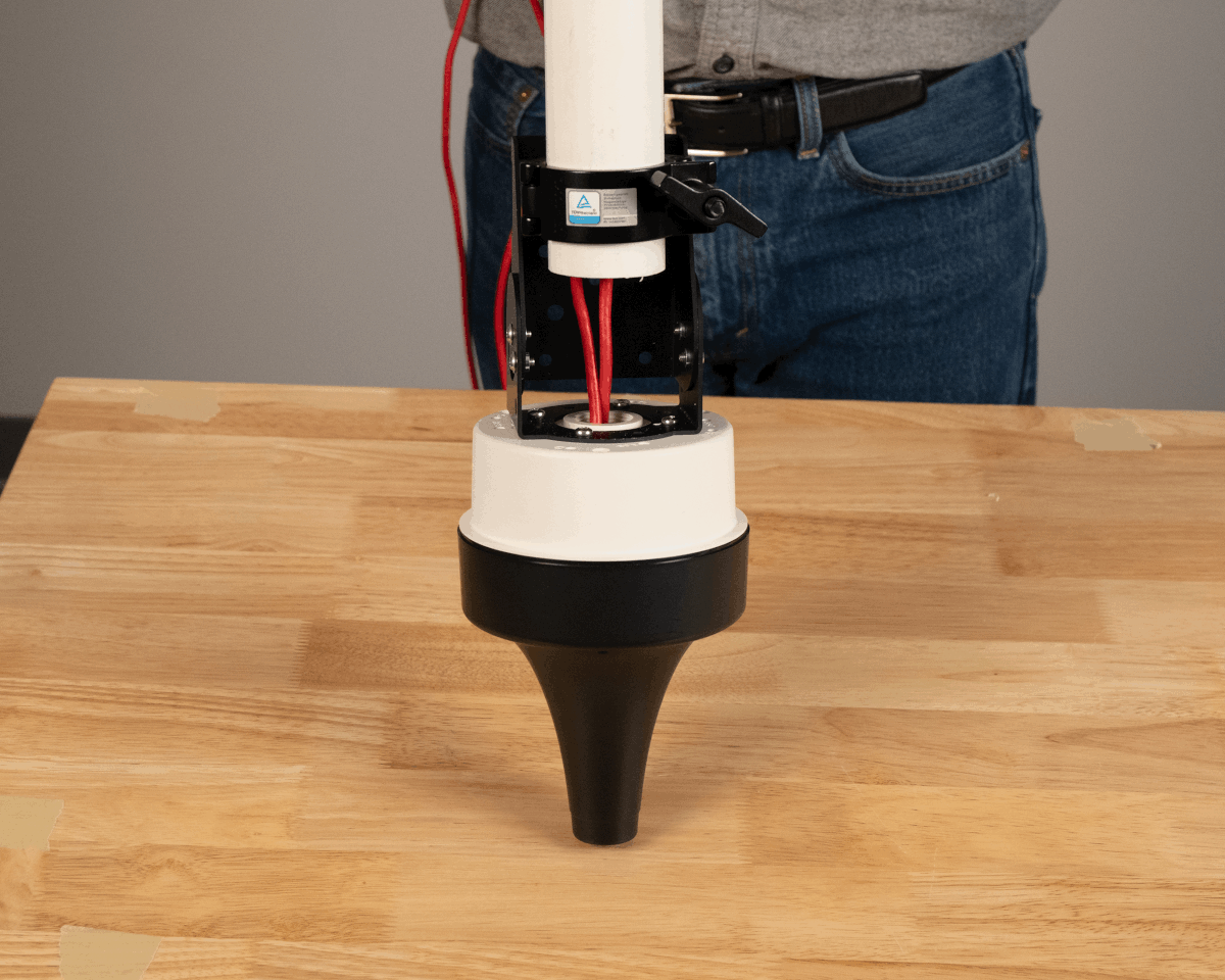 Screw the end of the cable gland to the AH302 Box Mount. Fully seat the flat rubber gasket onto the plastic and tighten to create a seal.