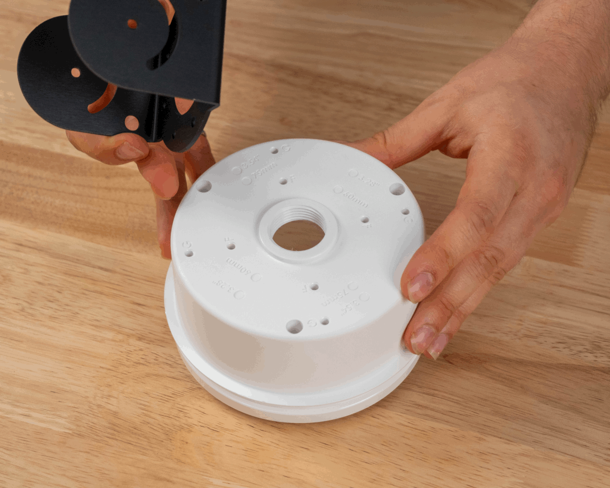 Align the AN302 backplate with the threaded bosses in the AH302. Twist to adjust as needed. Press AN302 and AH302 together.