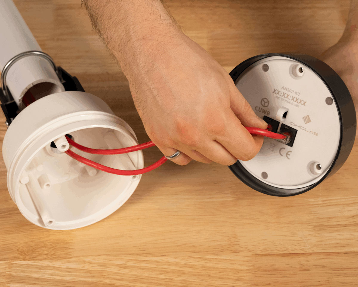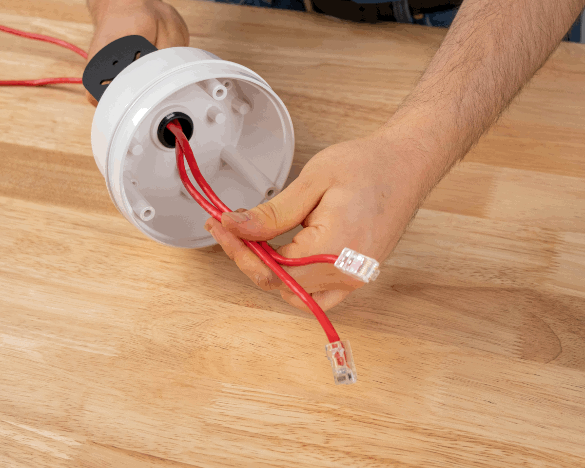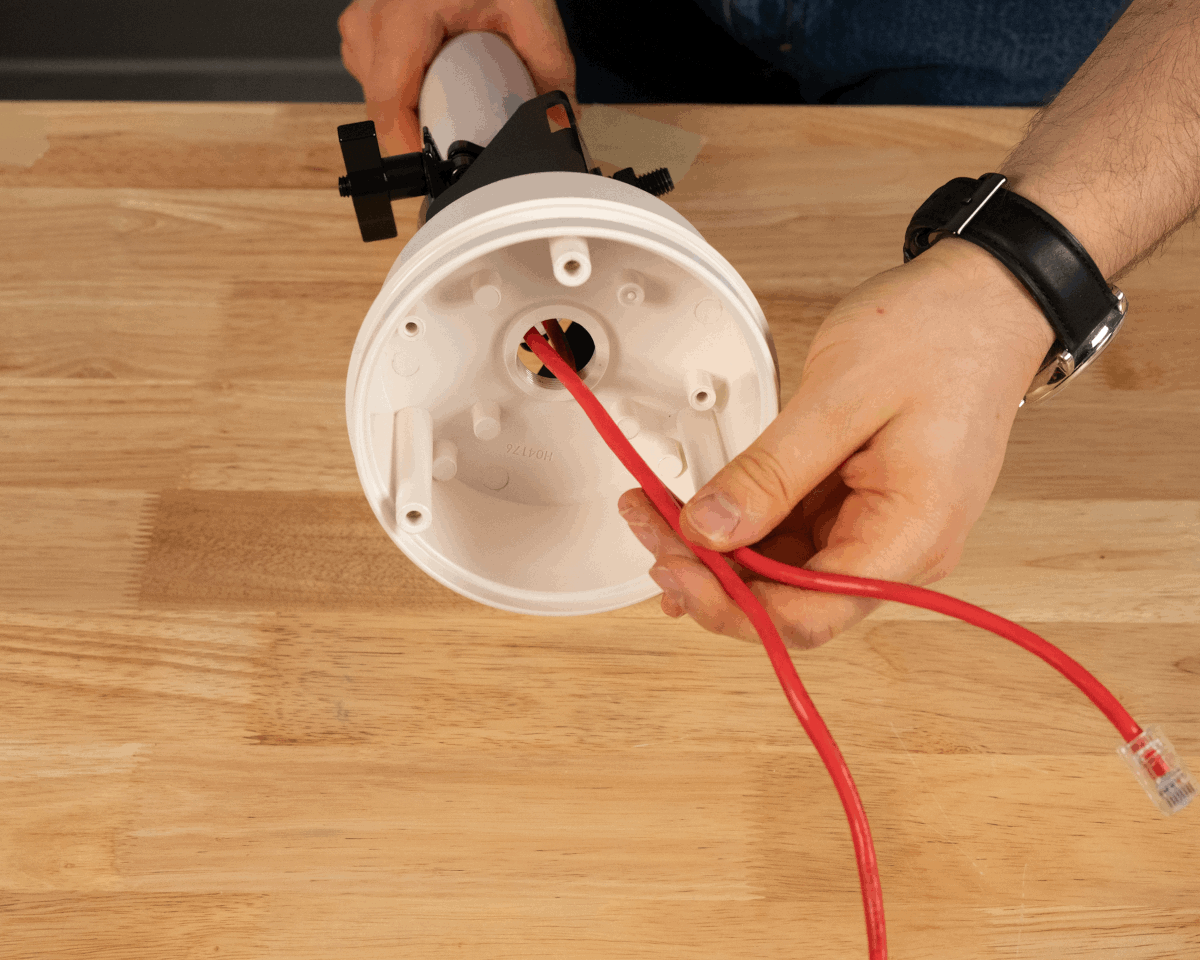 Plug the Ethernet cables into the back of the AN302 and gently insert the service loop into the mounting box.