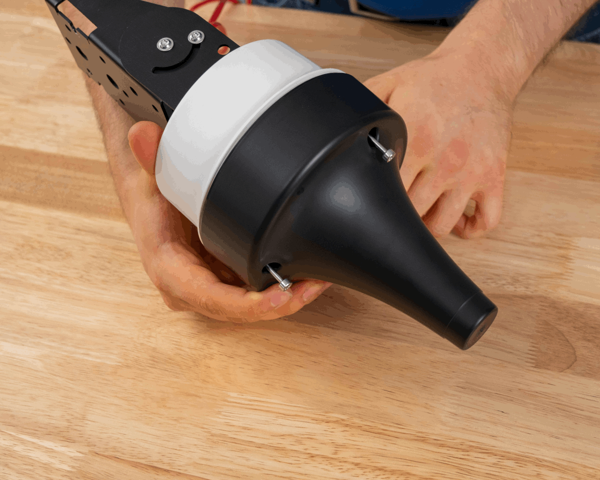 Using the #8 1/2-inch self-tapping screws, install AB301 Part B to AH302. Use four screws in total. Ciholas provides one spare.
