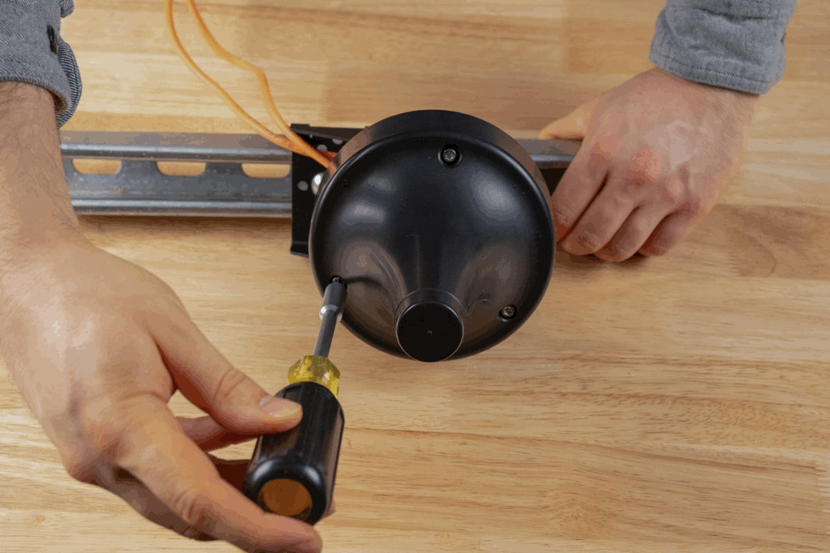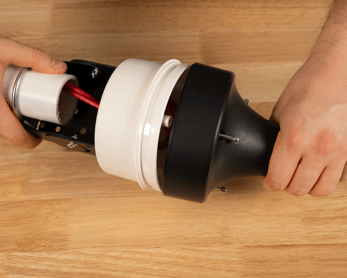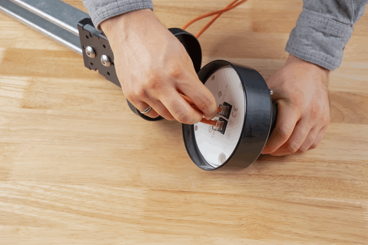 Screw the end of the cable gland to the AH302 Box Mount. Fully seat the flat rubber gasket onto the plastic and tighten to create a seal.