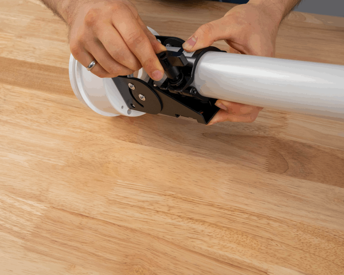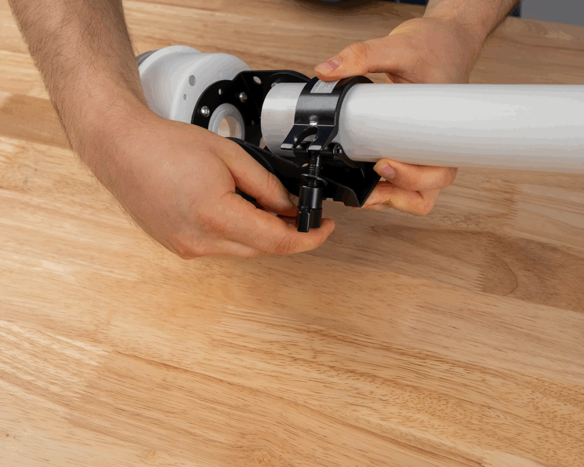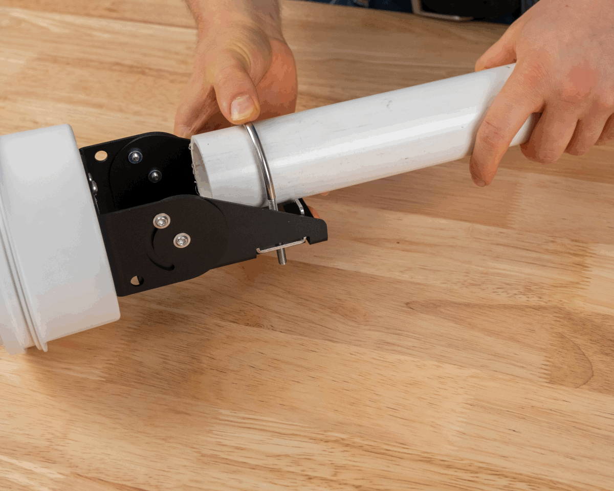 Insert pipe into clamp. Close clamp and tighten clamp wing nut securely.