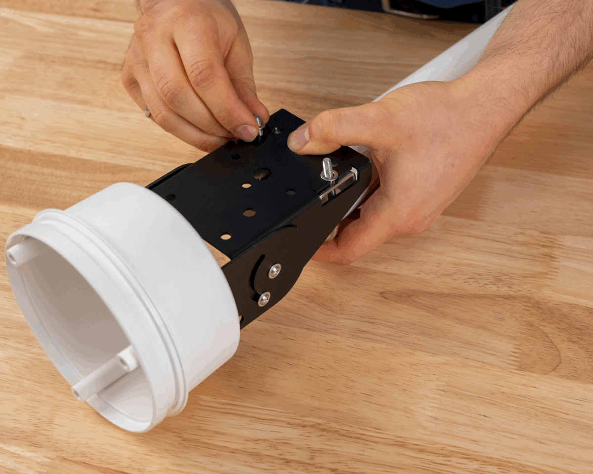 Align AB301 Part A with Part B. Using the M4 8mm flanged head screws, install AB301 Part A to AB301 Part B. Adjust the required angle for the bracket as needed.