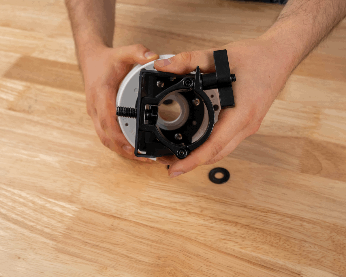 Remove Wing Nut, washer and split ring washer from the clamp base post.