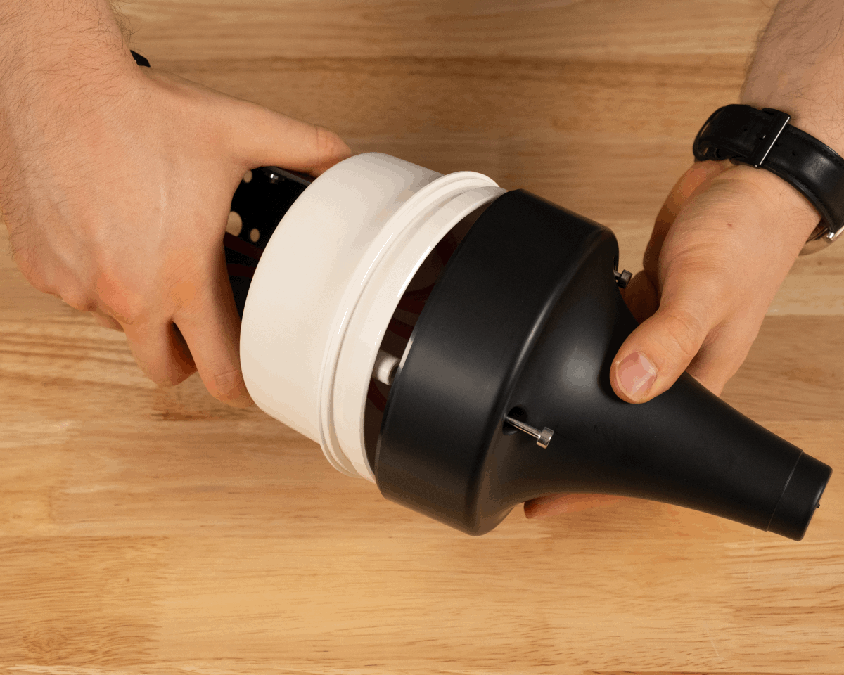 Align the AN302 backplate with the threaded bosses in AH301. Twist to adjust as needed. Press AN302 and AH301 together.