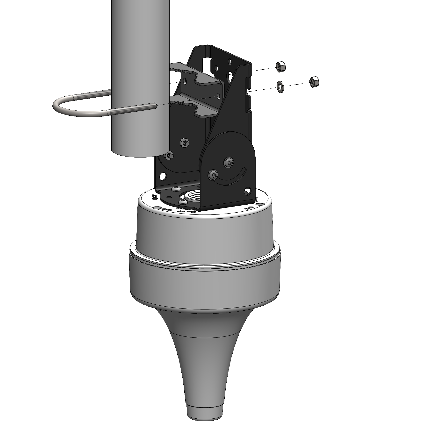Intended for deployments where AN302 units need a flexible mounting option. The adjustable bracket is installed with the AH301 mounting plate or AH302 mounting box and then can adapt with the following mounting schemes: