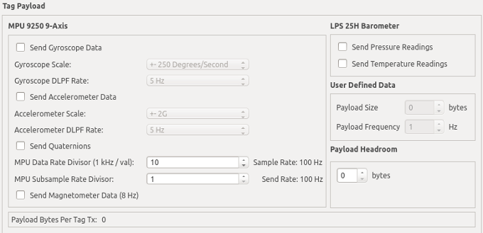 | Bit Rate | The speed the data portion of the UWB packets will be sent. Note: for this version, only 6.8 Mbps is supported. |
