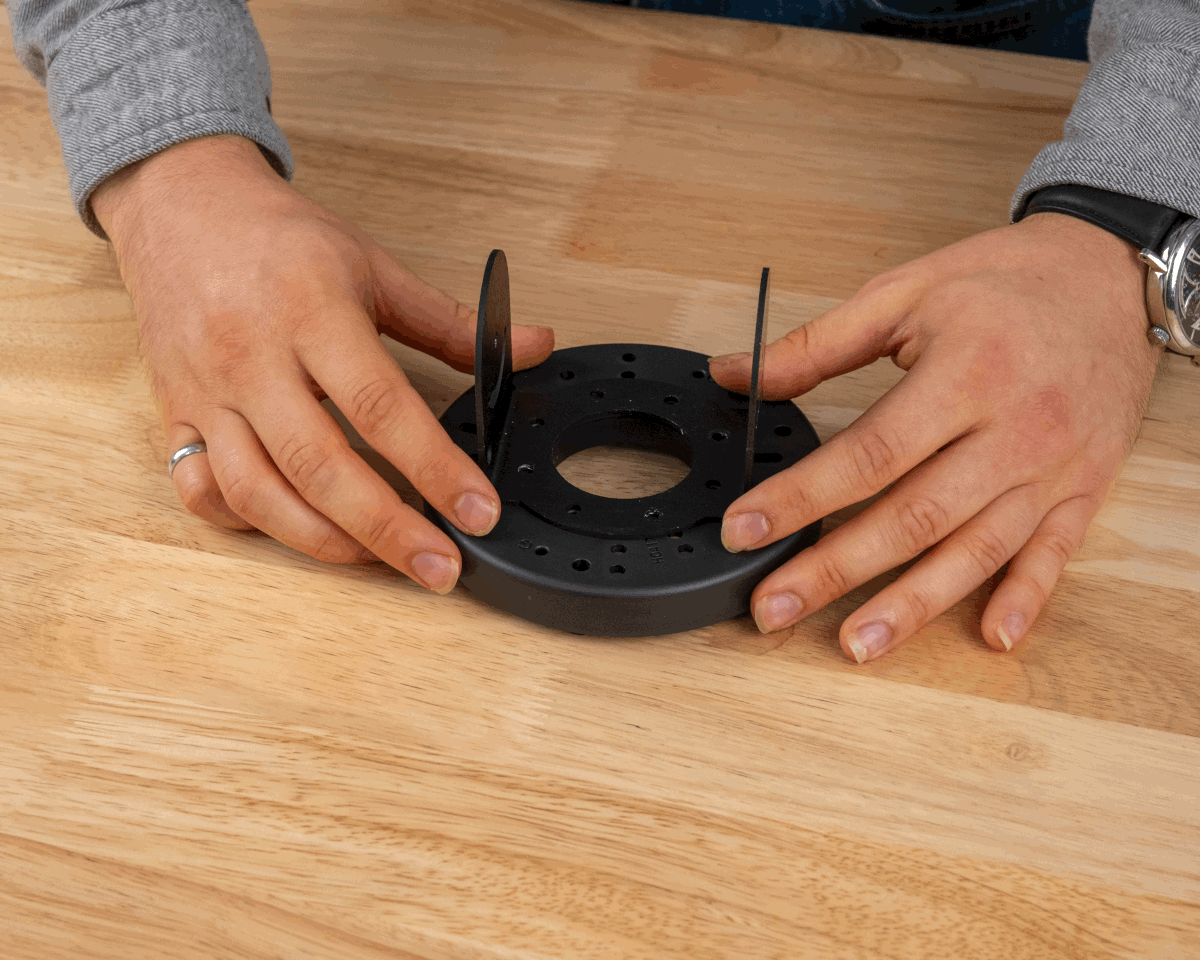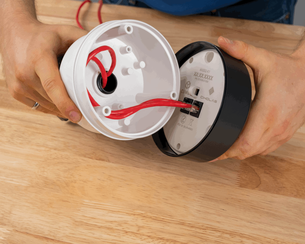 Align the AN302 backplate with the threaded bosses in the AH302. Twist to adjust as needed. Press AN302 and AH302 together.