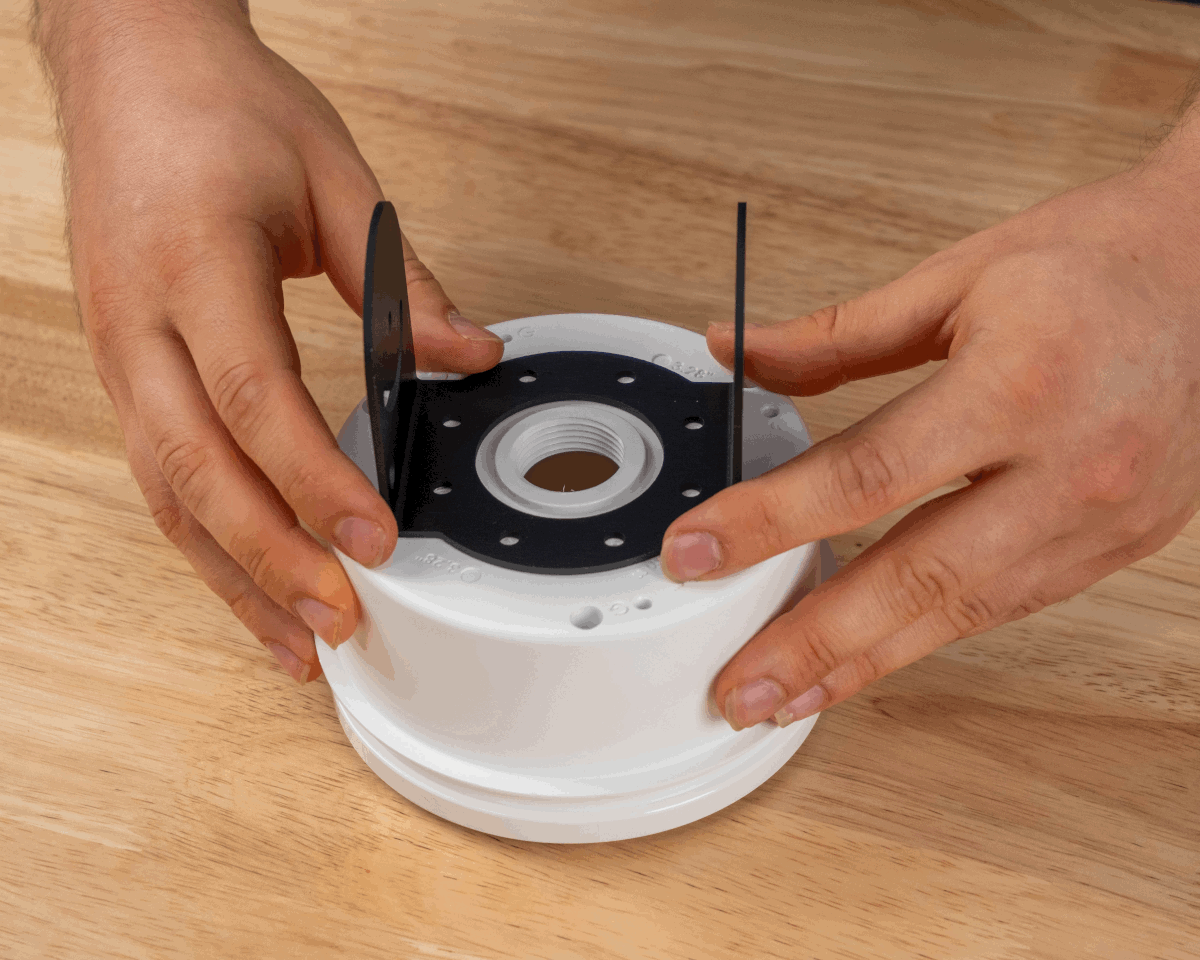 Insert the sealing gasket into the groove of the AH302 Box Mount with the large “teeth” facing outwards. Verify the seal is stretched evenly.