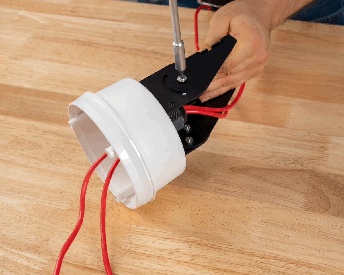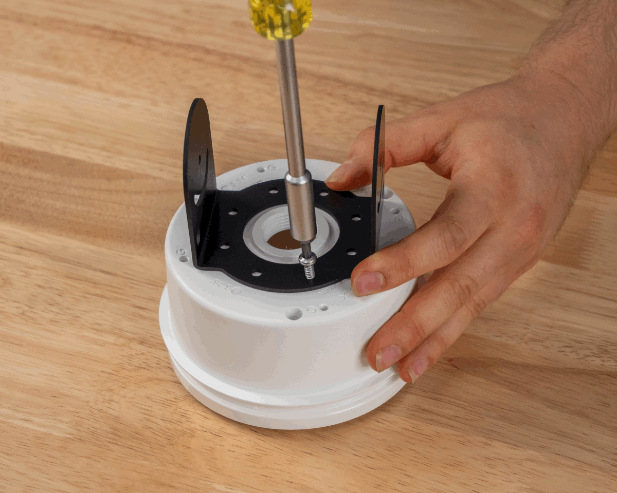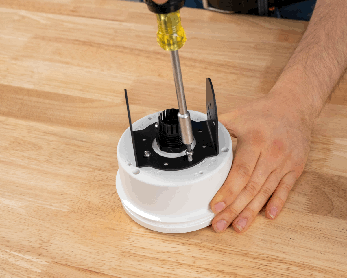 Screw the end of the cable gland to the AH302 Box Mount. Fully seat the flat rubber gasket onto the plastic and tighten to create a seal.