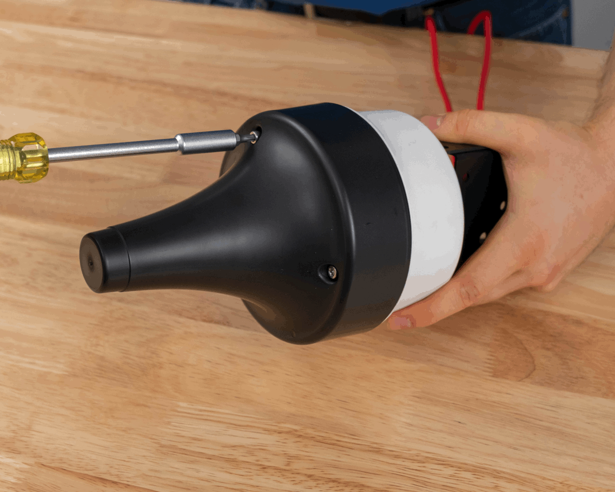 Using the #8 1/2-inch self-tapping screws, install AB301 Part B to AH302. Use four screws in total. Ciholas provides one spare.